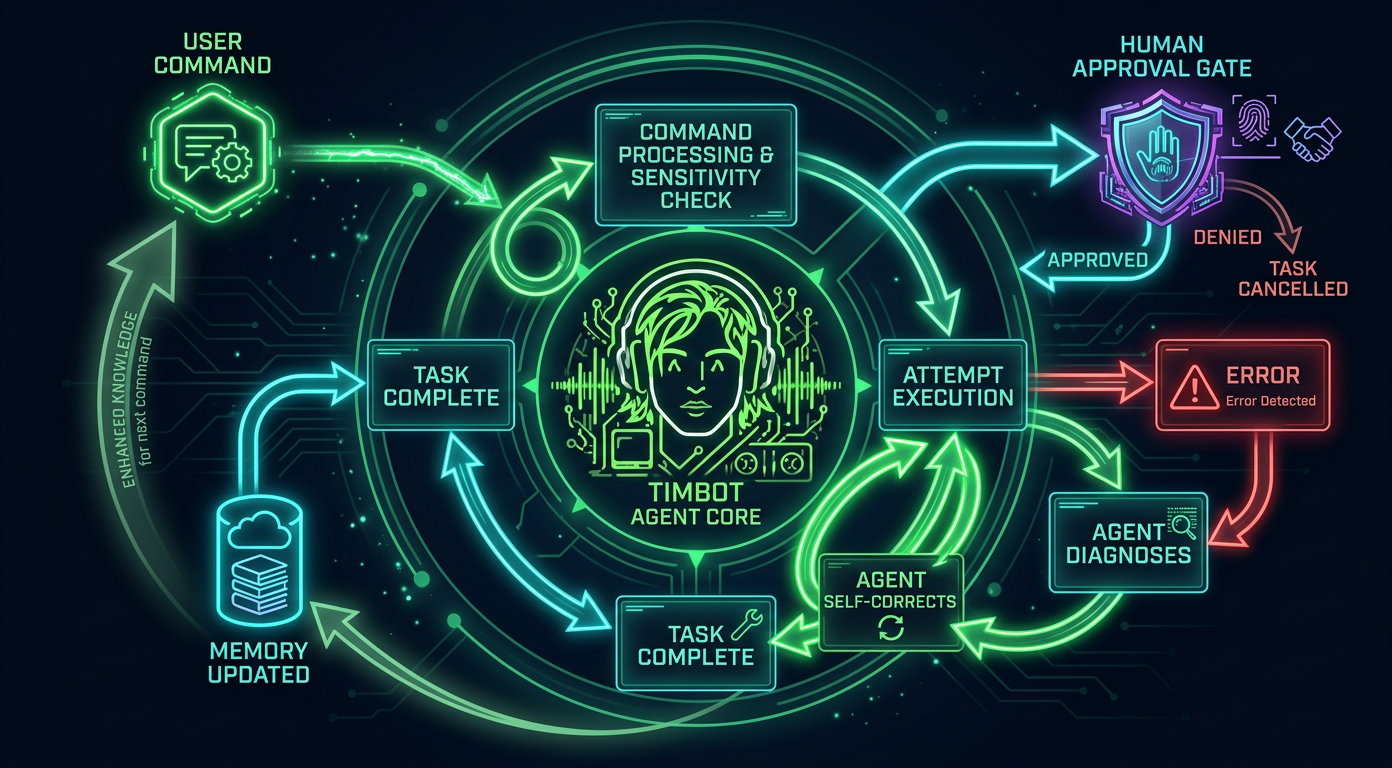 Tim's self-correction loop — attempt, diagnose, fix, learn.